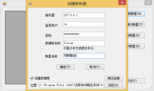 在创建账套界面,需要填写正确的SQL管理用户和密码,才有权限创建账套。
