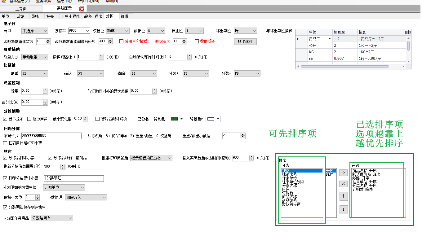 进入“维护中心"->"系统配置"->"分拣"->"排序",如下图所示。